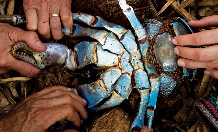 事实上,一些最高的放射性读数来自椰子,椰子树将辐射集中在土壤和地下水中。 这反过来又引发了关于环礁的另一种居民——盘子大小的椰子蟹的问题,它以水果为食。