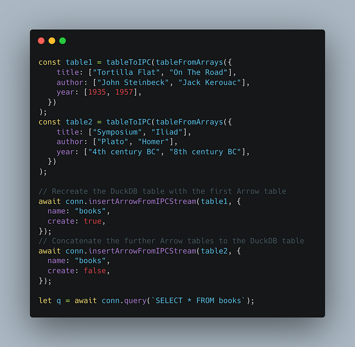 通过使用一些最近流行的技术,可以加速构建快速的浏览器内处理堆栈。 该配方基本上是:采用 DuckDB WASM(数据交换和 SQL)、Web Workers(并行化处理密集型、特定于域的任务)并通过 Apache Arrow 将它们粘合在一起。