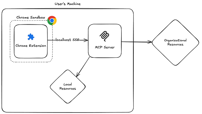 现在我们了解了基于本地 SSE 的 MCP 服务器是如何运行的,以及它通常可以被运行在同一机器上的进程访问,我们可以重新审视这个问题:Chrome extension 也可以访问它吗?