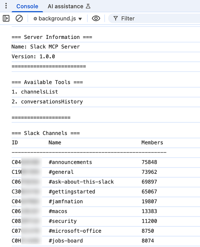 我们还尝试设置了一个 Slack MCP,我们的 Chrome extension 能够访问它并与其公开的功能进行交互: