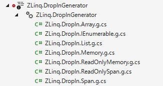 此外,ZLinq 提供了一个用于 Drop-In Replacement 的 Source Generator,可以选择消除对 AsValueEnumerable() 的需求: