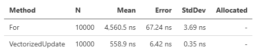 T[] 和 Span<T> 提供了 VectorizedUpdate 方法: